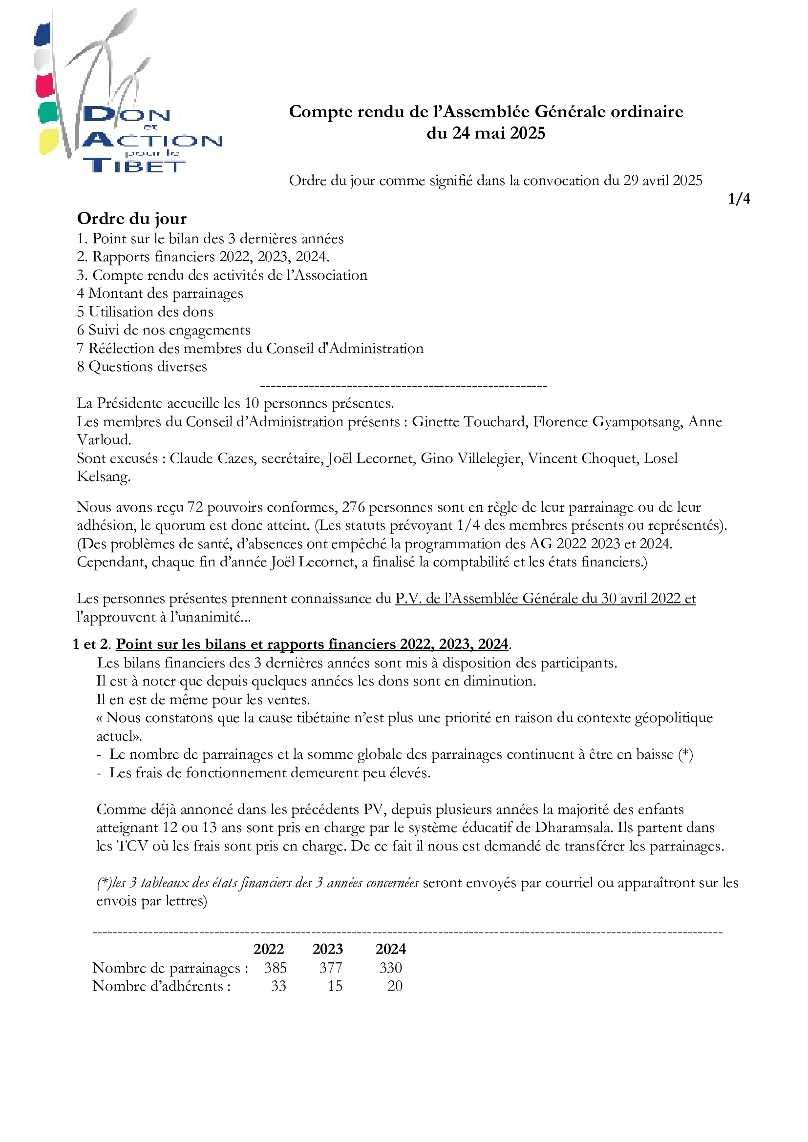 Pour cause de maladies et d’absences de membres du bureau nous n’avons pas été en mesure d’organiser d’Assemblées Générales en 2022 et 2023.